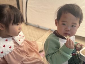 テントを張ると寒さを感じることなく快適に過ごせるので、子供達はお腹いっぱいになったらテント内でお昼寝もしてくれました。